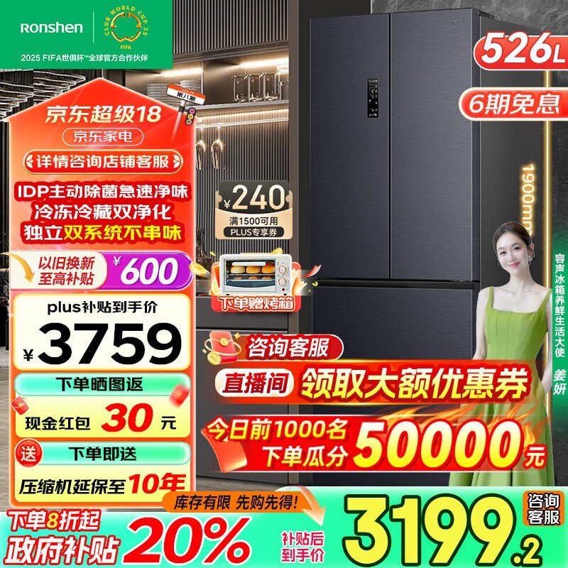 容声双净系列冰箱526L京东活动价2699元到手
