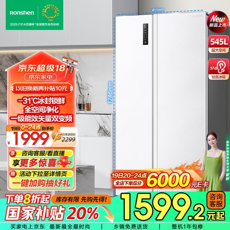 容声545升对开门冰箱BCD-545WD6HP珍珠白节能静音促销