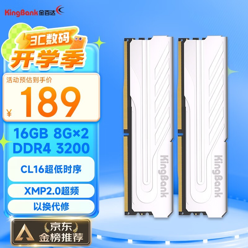 金百达银爵DDR4内存条16GB(8GBx2)3200MHz京东特惠189元