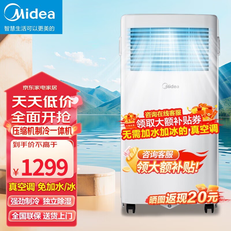 美的移动空调变频一体机1299元包安装