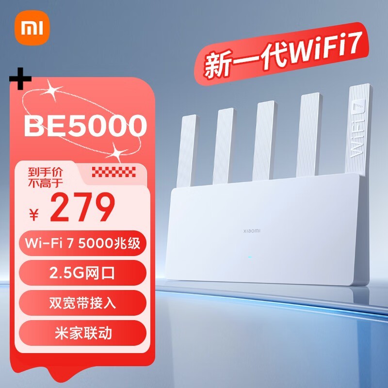 小米Xiaomi BE5000千兆无线路由器Wi-Fi7京东259元包邮