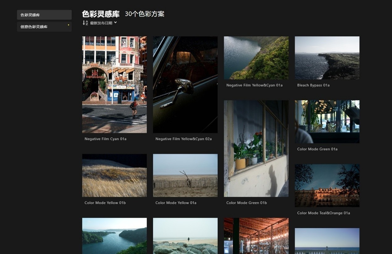 我们这次下载了6个色彩方案,比如ClrMode_Gn_01a、ClrMode_Gn_01b、Negative_Cy_01a、Negative_CyBu_01b等等。这些色彩方案具备独特、个性的色彩风格,同时一些色彩方案具备浓郁的胶片风格。