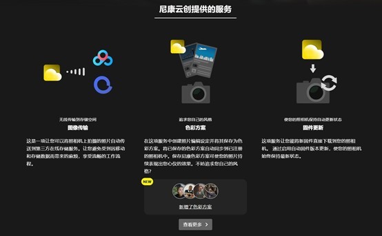 这里先简单的介绍一下尼康云创,尼康云创是一项在线存储与传输的应用程序。在使用过程中,用户可以通过同一个Wi-Fi环境,将相机、计算机与其他智能设备连接至尼康云创服务中,享受相关功能。尼康云创目前主要支持三个核心功能,自动图像传输、色彩方案的上传与下载、固件更新。我们今天所体验的核心功能是色彩方案的下载,也就是为尼康Z50II下载几个个性化的色彩方案,丰富我们的拍摄体验。