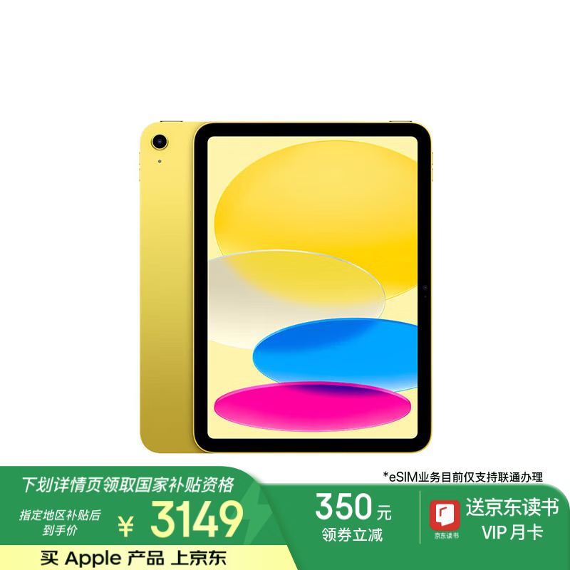 苹果iPad第10代64GB eSIM版黄色平板电脑MUU13CH/A