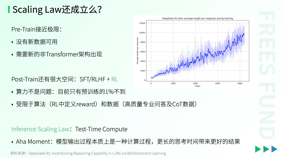 总结来看,Scaling Law仍然成立,只不过应用范式发生了变化,其在后训练和推理阶段依然具有重要意义。