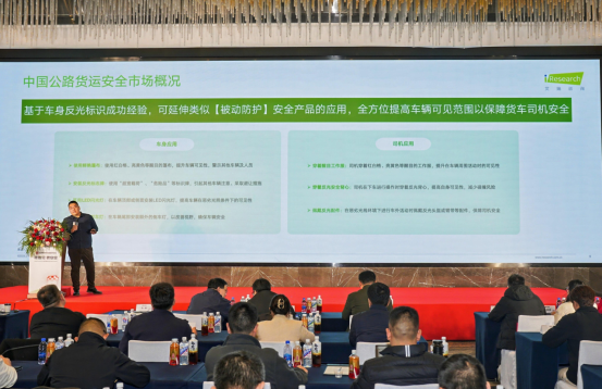 艾瑞咨询作为研究中心的顾问机构,发布了《中国公路货运安全研究》报告。报告指出,公路货运占据中国物流运输的主导地位,但货车事故发生率高,历史数据显示,中国货车事故发生率近25%;同时,司机老龄化趋势加剧,且普遍存在高强度劳作现象。因此,提升货车司机的安全意识和外部安全保障措施尤为重要。报告还强调了被动防护在货运安全管理中的重要性,如安装车身反光标识等,能有效避免交通事故的发生,数据显示,在昏暗环境下,因司机没有及时发现货车导致追尾的发生率为41%,安装车身反光标识,夜间碰撞事故减少率为21%,安装车身反光标识每年挽救400多条生命。醒目标识的应用,能够有效提高货车的可见性,减少交通事故的发生。