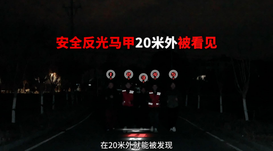 通过现场安全研究中心发布的真实道路测试,我们可以看到采用红白格设计的运满满雨布,相比普通货车,发现率能够显著!在夜晚环境中,没有穿着安全马甲的司机约5米距离能够被发现,而穿着运满满反光马甲,在20米外都能明显发现!