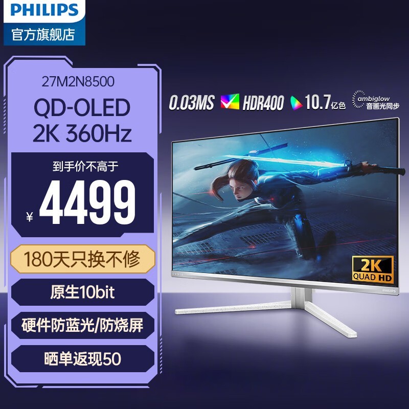 飞利浦27英寸2K360HzQD-OLED显示器促销到手4499元