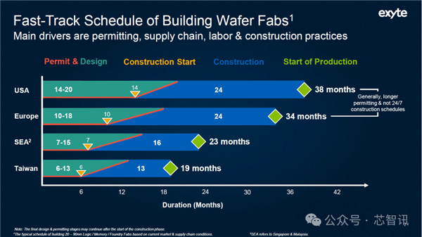 对于欧洲晶圆厂来说,可能需要34个月的时间,中国大陆和东南亚则平均需要23个月。