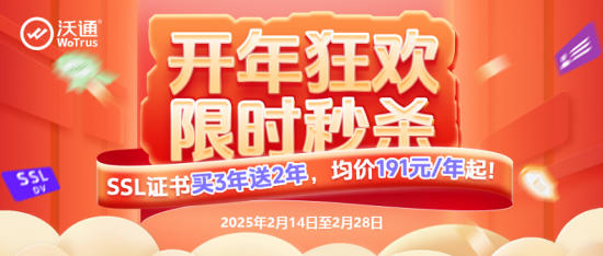 2025新年伊始,网络安全威胁仍在持续,企业亟需筑牢数字安全防线,部署SSL证书已非“可选”,而是建立网络安全防线的“必选”项。值此关键节点,沃通WoTrus推出2025“开年狂欢·限时秒杀”活动,即日起至2月28日,SSL证书买3年送2年,限量抢购、售完即止。无论是保护用户隐私,还是提升网站可信度,沃通SSL多年期证书优惠,都能为企业网络安全建设降本增效提供助力。