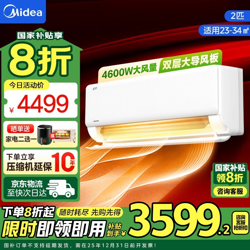 美的机煌系列新一级能效2匹壁挂式空调仅3313元