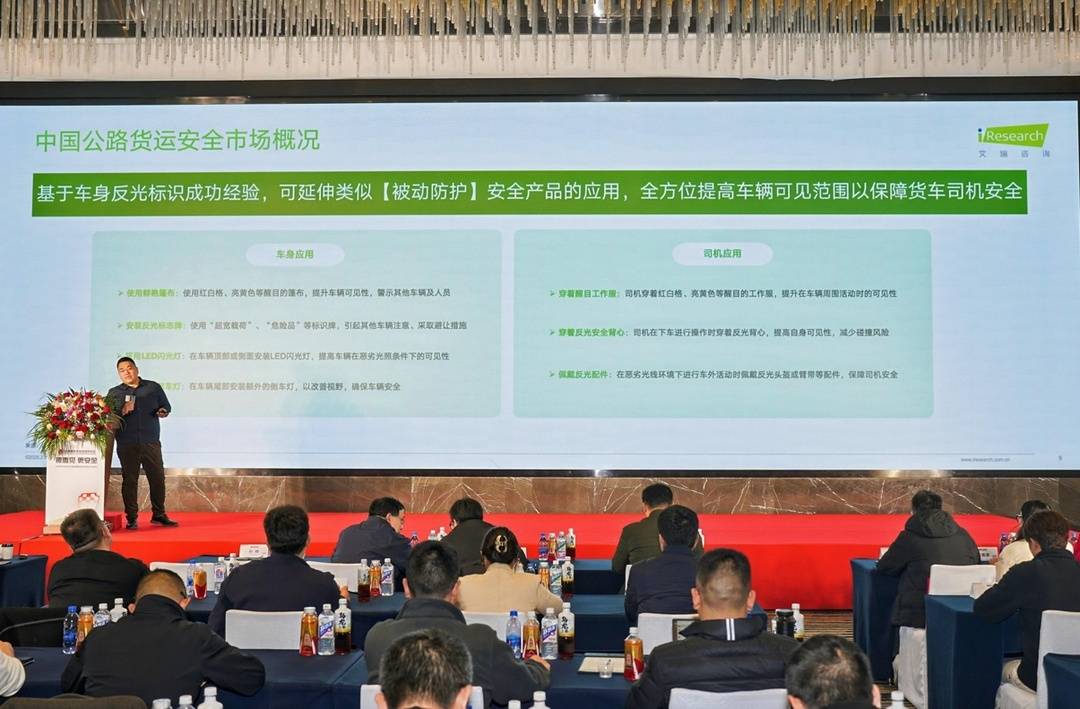 艾瑞咨询作为研究中心的顾问机构,发布了《中国公路货运安全研究》报告。报告指出,公路货运占据中国物流运输的主导地位,但货车事故发生率高,历史数据显示,中国货车事故发生率近25%;同时,司机老龄化趋势加剧,且普遍存在高强度劳作现象。因此,提升货车司机的安全意识和外部安全保障措施尤为重要。报告还强调了被动防护在货运安全管理中的重要性,如安装车身反光标识等,能有效避免交通事故的发生,数据显示,在昏暗环境下,因司机没有及时发现货车导致追尾的发生率为41%,安装车身反光标识,夜间碰撞事故减少率为21%,安装车身反光标识每年挽救400多条生命。醒目标识的应用,能够有效提高货车的可见性,减少交通事故的发生。