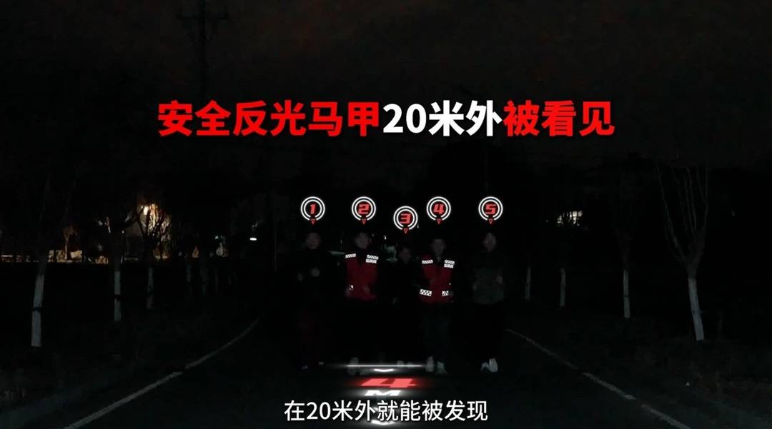 通过现场安全研究中心发布的真实道路测试,我们可以看到采用红白格设计的运满满雨布,相比普通货车,发现率能够显著!在夜晚环境中,没有穿着安全马甲的司机约5米距离能够被发现,而穿着运满满反光马甲,在20米外都能明显发现!