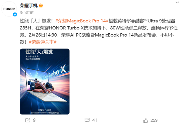 2月26日14:30,荣耀笔记本新品发布会将正式揭晓这款产品的更多细节,究竟能给我们带来哪些惊喜,且拭目以待。