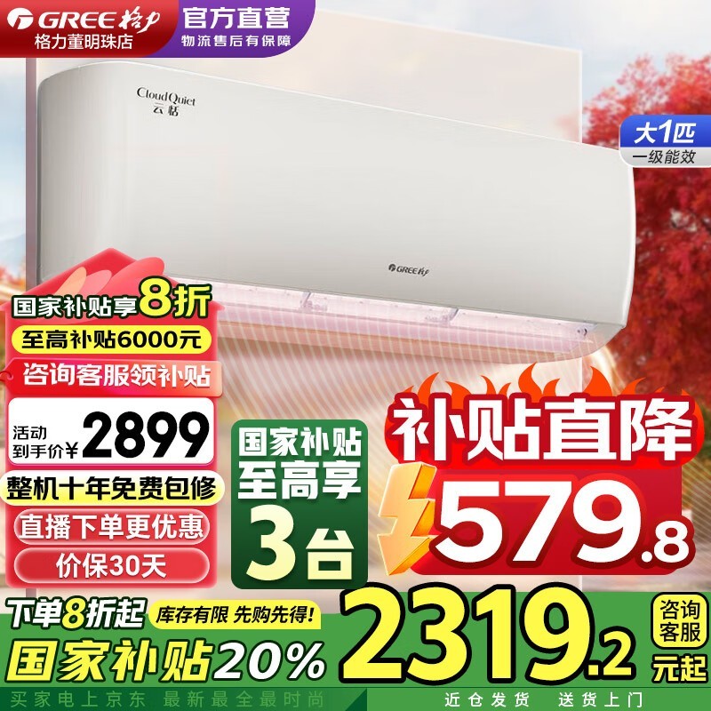 格力云恬空调1匹新一级能效变频仅2319元包安装