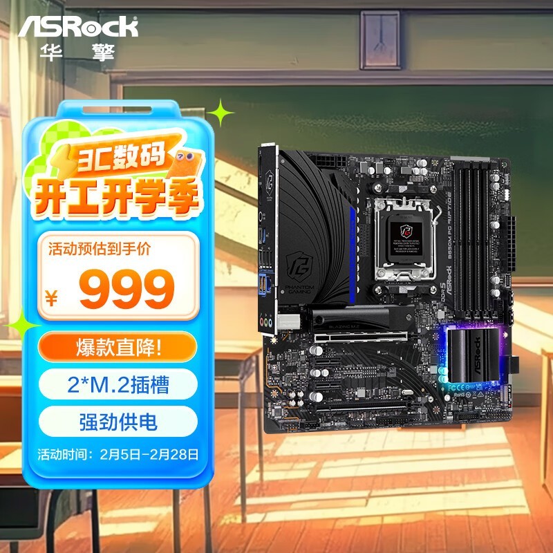 华擎B650M主板促销:12+2+1供电,DDR5高频性能,到手999元