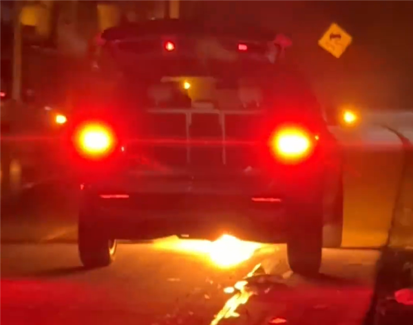 从他公布的视频以及对警察的描述看,当时一行人驾车时听到有咯噔咯噔的异响,油门也踩不动,于是不得不在路边临停。