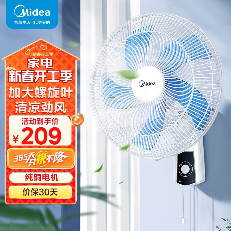 美的壁挂风扇空气循环扇遥控家用卧室香薰学生宿舍可拆洗