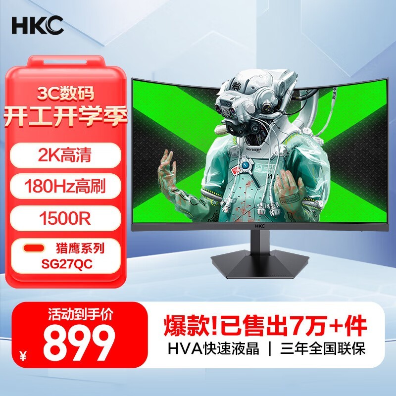 HKC SG27QC 27英寸2K VA曲面显示器144Hz刷新率满减促销到手899元
