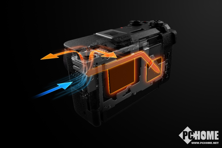 为了应对长时间拍摄视频的需求,PowerShot V1在机身内部(左肩部位)内置了冷却风扇,并可根据需要在高/中/低三种转速中选择,在拍摄视频时可有效提升散热性能,确保长时间工作的稳定性。在室温23℃环境下,开启机内冷却风扇后,PowerShot V1可连续长时间记录4K高分辨率视频,不受机身温度限制。