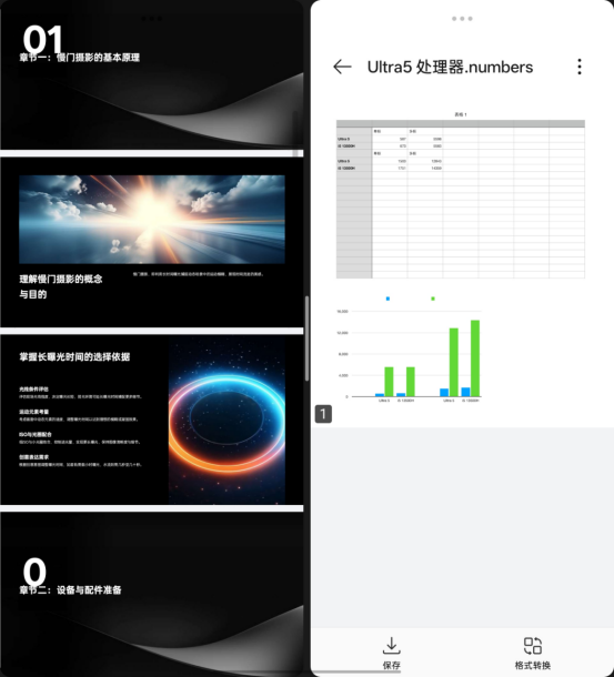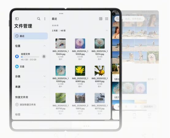 OPPO Find N5针对折叠屏在使用文档应用中出现的问题进行交互适配,实现分屏浏览的交互体验,原文、批文可以对照改,还支持双文档分屏模式,横向比对超高效。而且OPPO Find N5会通过AI对用户分屏需求进行预测和分析,在多任务场景下自动弹出智能分屏推荐功能。