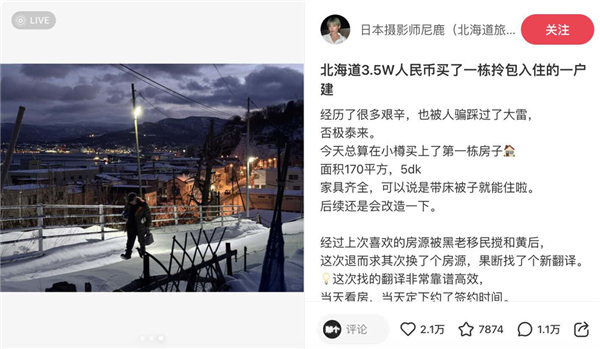 在国内,最令人艳羡的案例莫过于“日本摄影师尼鹿”分享在小红书上的购房经验。
