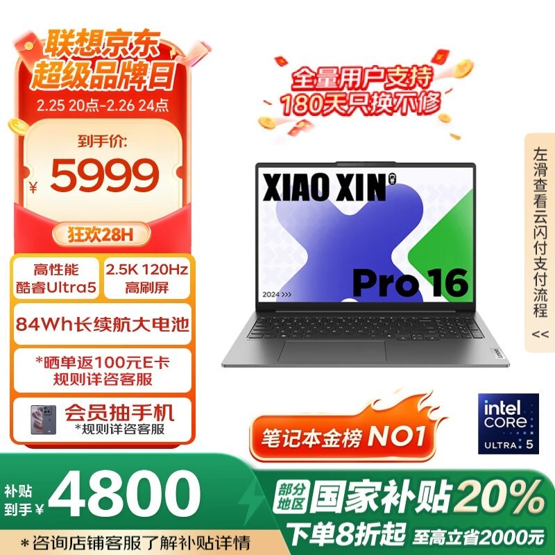 联想小新ProAI2024轻薄本酷睿 Ultra5-125H处理器32GB+1TB