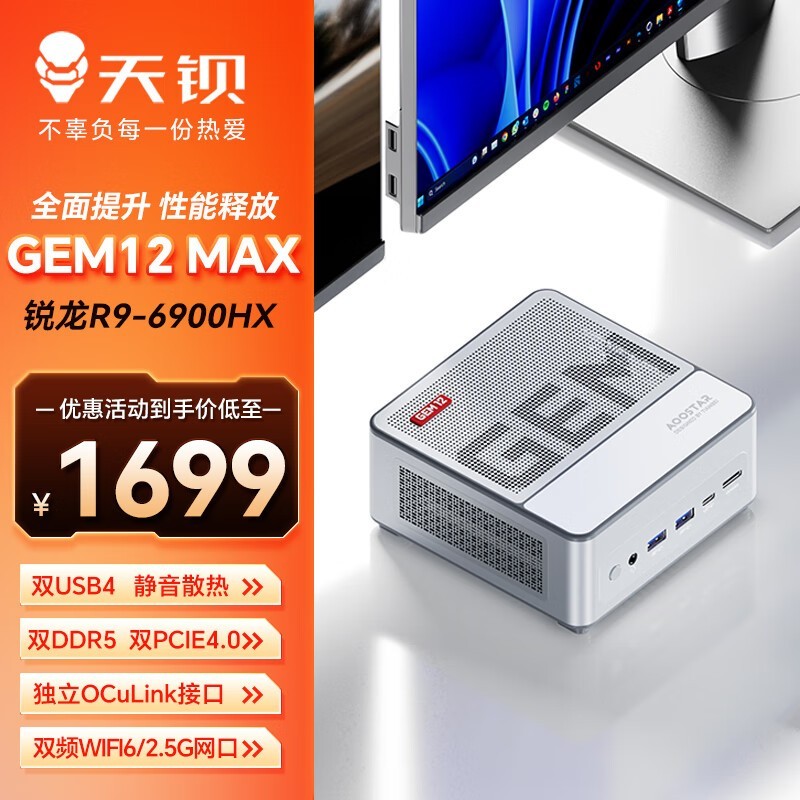 天钡GEM12MAX迷你主机R9-6900HX处理器仅1699元