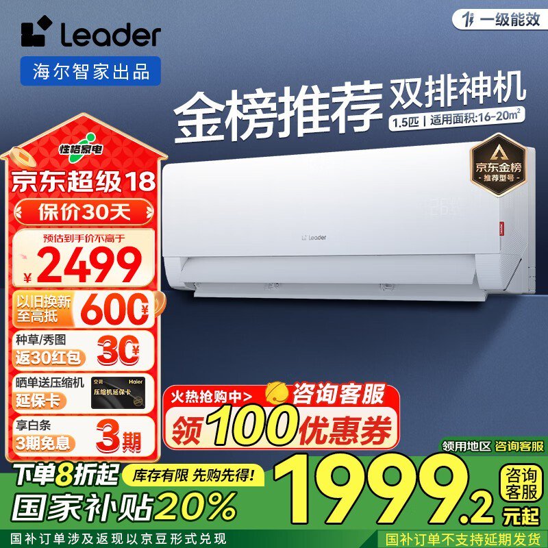 海尔Leader1.5匹变频空调挂机超一级能效省电划算