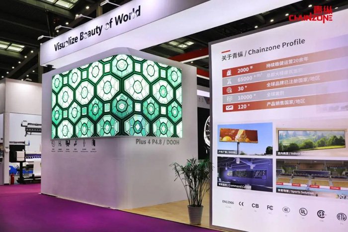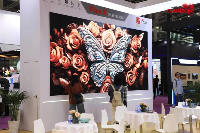 本次展会,青纵重磅推出了旗舰新品Plus X户外显示系列,Plus X系列秉承绿色节能的设计理念,采用Mini LOB透镜技术。在万级亮度下仍可以保持超高对比度,同时屏体的发热少,万级亮度下每平方米最大功耗可低至400W,可有效解决LED户外显示屏对比度低、能耗高的行业痛点。Plus X系列自推出以来屡获大奖,目前已获得2024法国设计奖和2024美国好设计奖金奖。