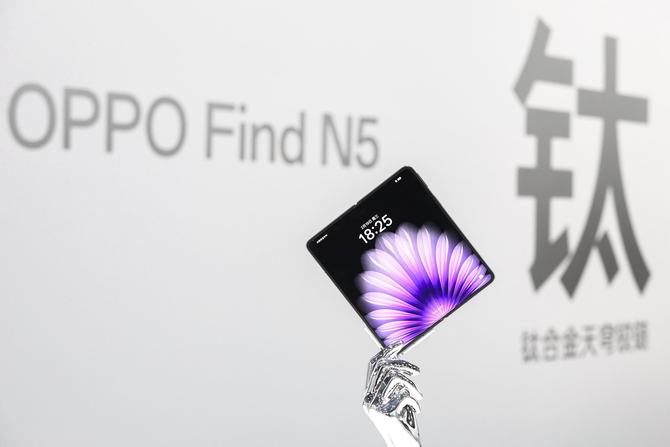 铰链设计上,Find N5带来了首创的3D激光打印「钛合金天穹铰链」,该机以可靠之名重新定义轻薄,让轻薄折叠也拥有了媲美传统直板旗舰的可靠性。OPPO「天穹架构」的有力加持,更让Find N5实现了从内到外一体化防护升级,甚至首次为折叠屏带来了IPX6 + IPX8 + IPX9的满级防水。