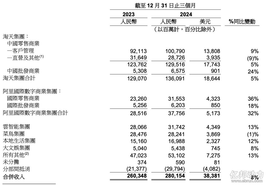 【亿邦原创】2月21日消息,阿里巴巴集团(纽交所代码:BABA港交所代码:9988)刚刚公布了截至2024年12月31日止季度,即2025财年三季度财报。