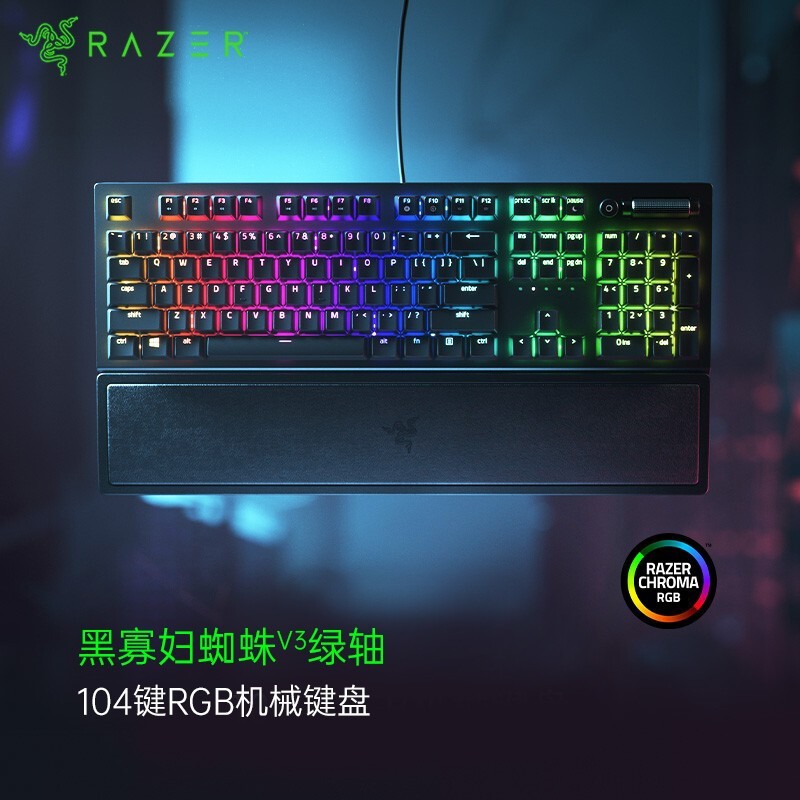 雷蛇黑寡妇蜘蛛V3机械键盘绿轴RGB灯光游戏办公键盘