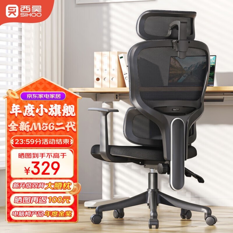 西昊M56-101人体工学电脑椅黑色固定扶手款促销
