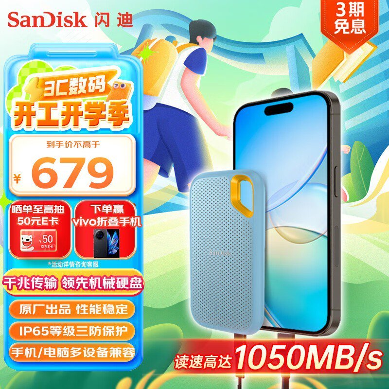 SanDisk 至尊极速E61移动固态硬盘1TB仅629元