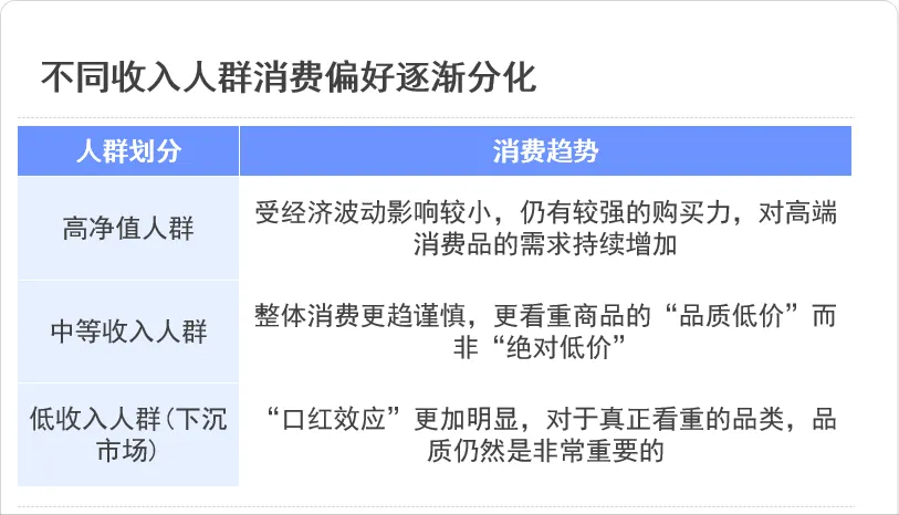 当前国内消费市场真正发生的既不是单纯的“升级",也不是简单的“降级”,而是“消费分层”: