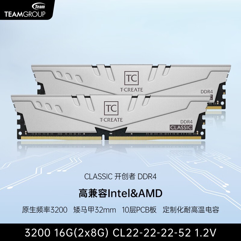 十铨T-CREATE DDR4 3200MHz 8GB台式机内存促销