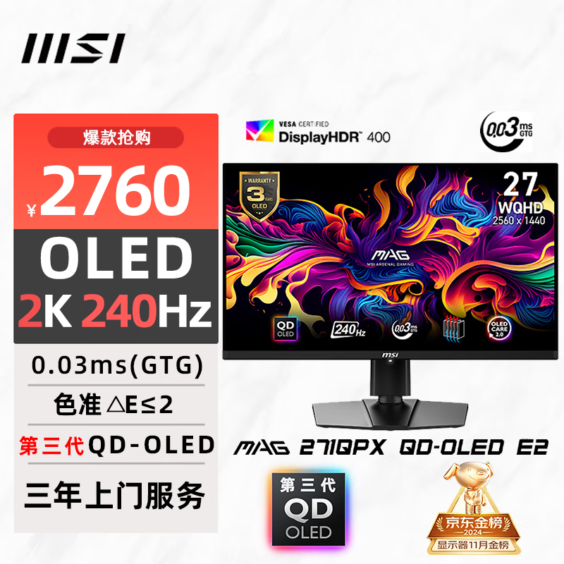 微星MAG271QPX显示器26英寸2K240Hz仅2334元