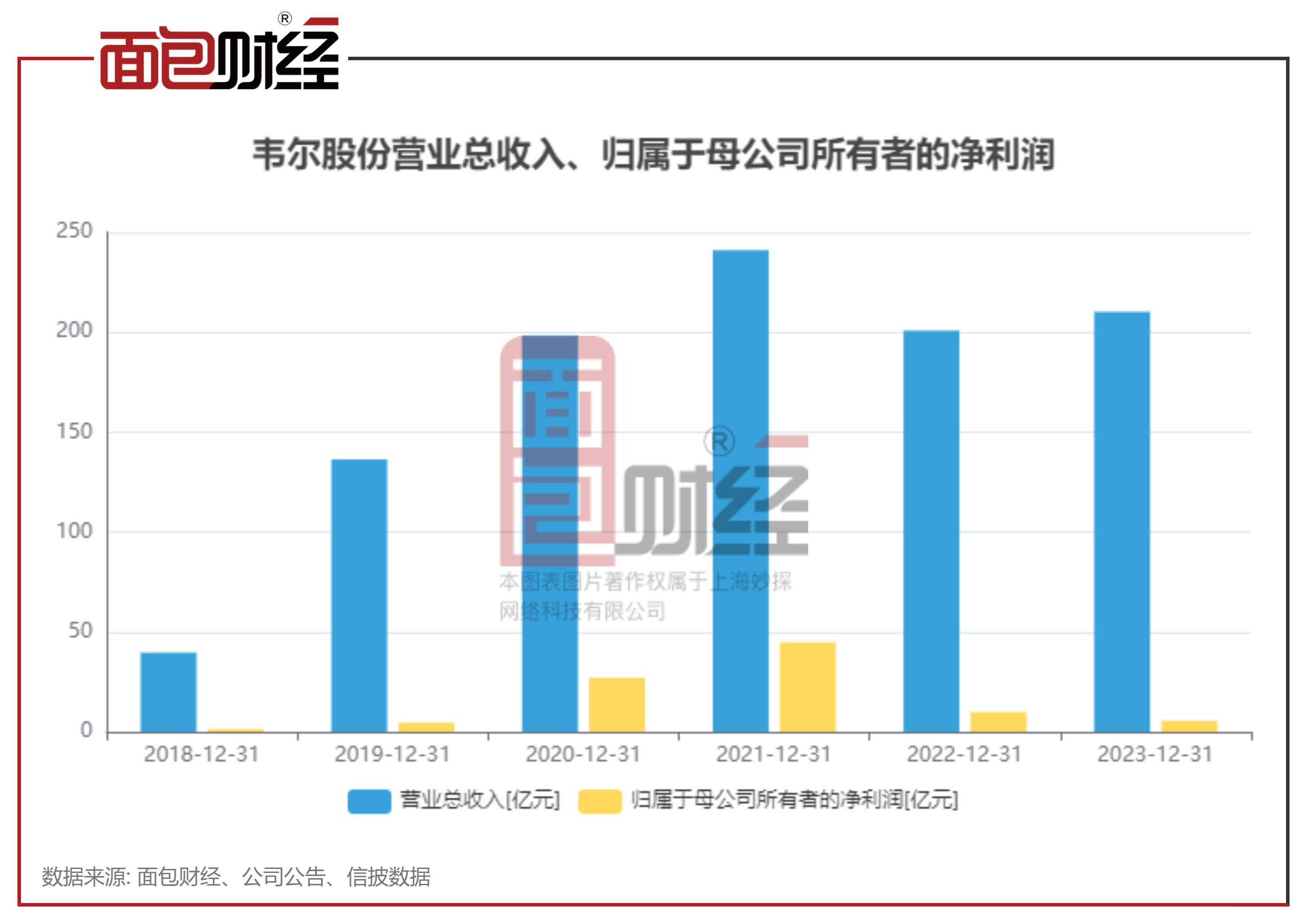 不过,韦尔股份2024年的预计归母净利润尚未超过2021年。公告显示,韦尔股份2021年实现归母净利润44.76亿元,同比增长65.41%。