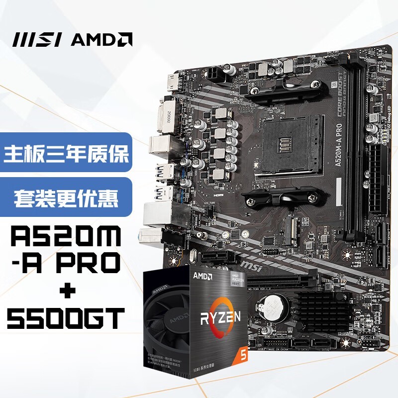 微星A520M-A PRO+ AMD R5 5500GT主板CPU套装京东特惠