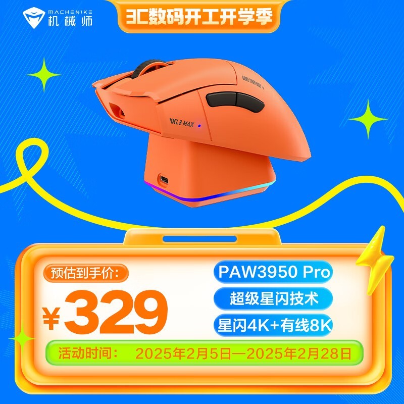 机械师L8max星闪蓝牙三模游戏鼠标轻量化设计仅258元