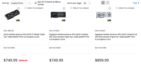 比如美国新蛋,749美元原价的乍一看不算少,华硕、技嘉、微星、PNY、索泰都有。