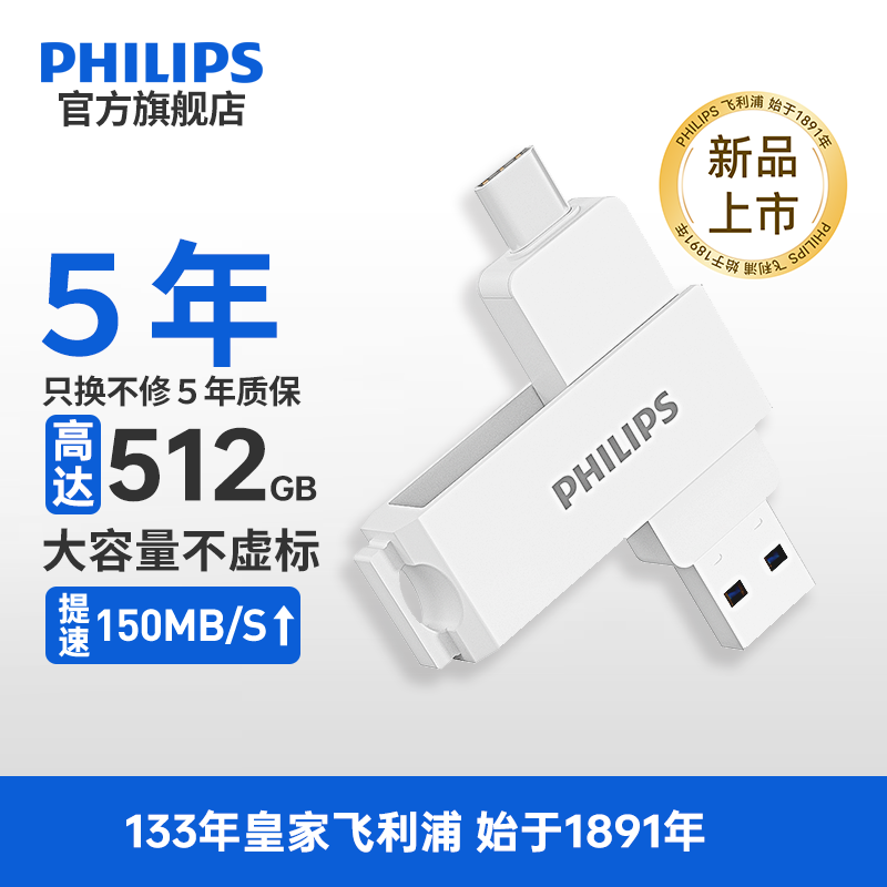 飞利浦创新Type-C双接口U盘:金属质感、128GB大容量,69.9元高效商务与生活助手