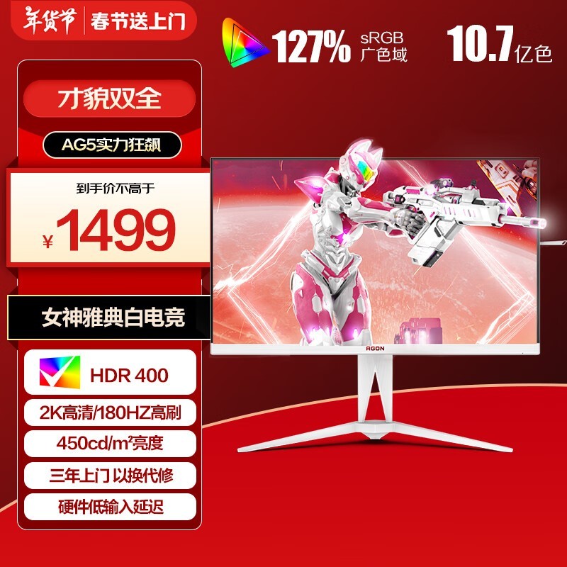 爱攻AGON电竞显示器AG275QXW京东特惠仅1267元
