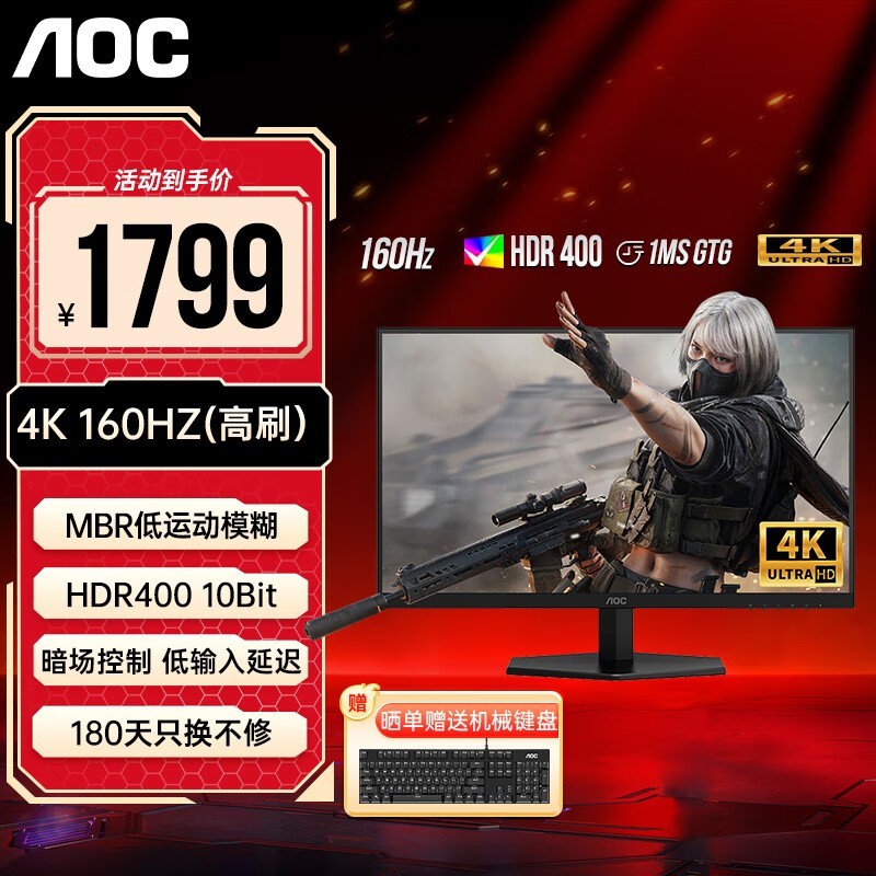 AOC U27G40E 27英寸IPS电竞显示器4K超清1799元包邮