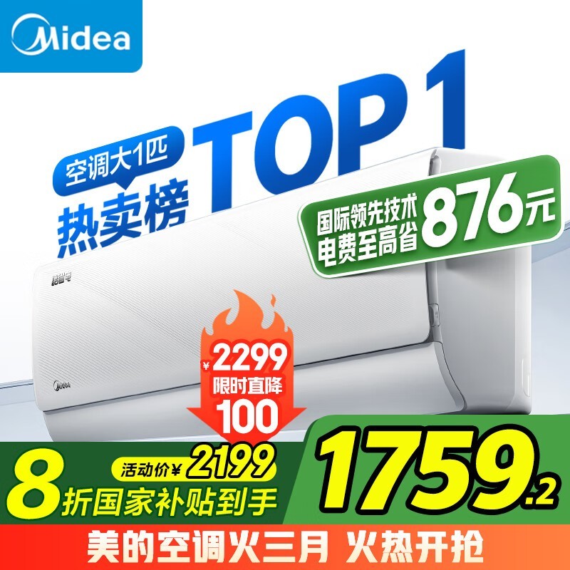 美的大1匹变频空调KFR-26GW/N8KS1-1新一级能效壁挂式