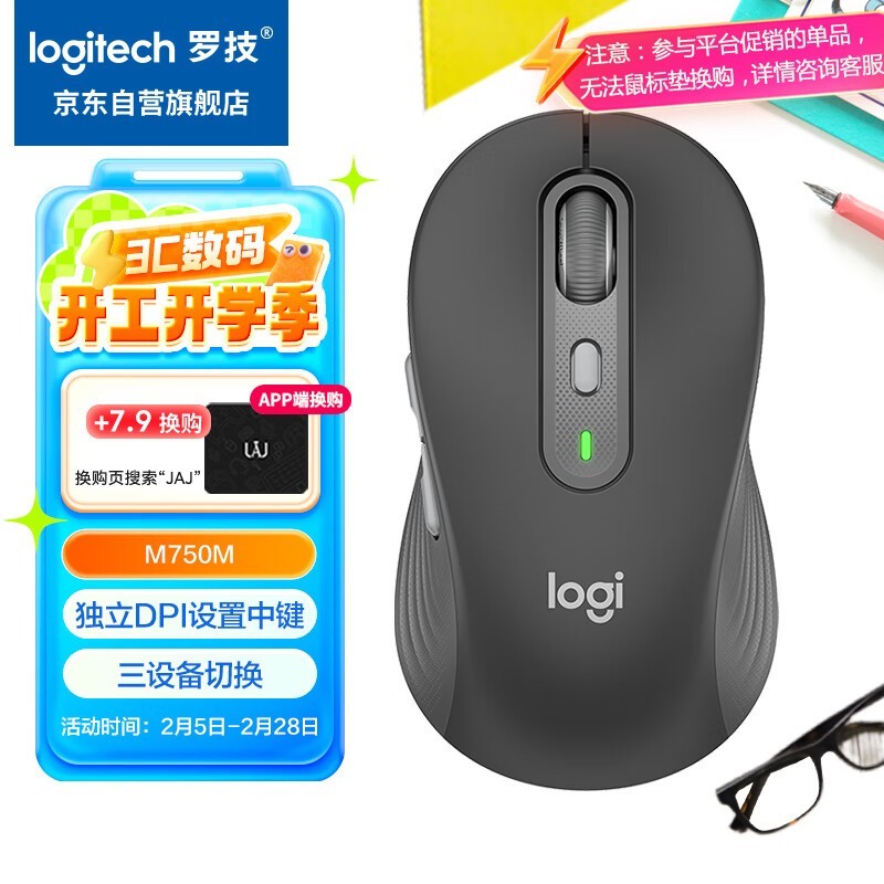 罗技Logitech M750 M蓝牙无线鼠标黑色舒适高效设计促销中