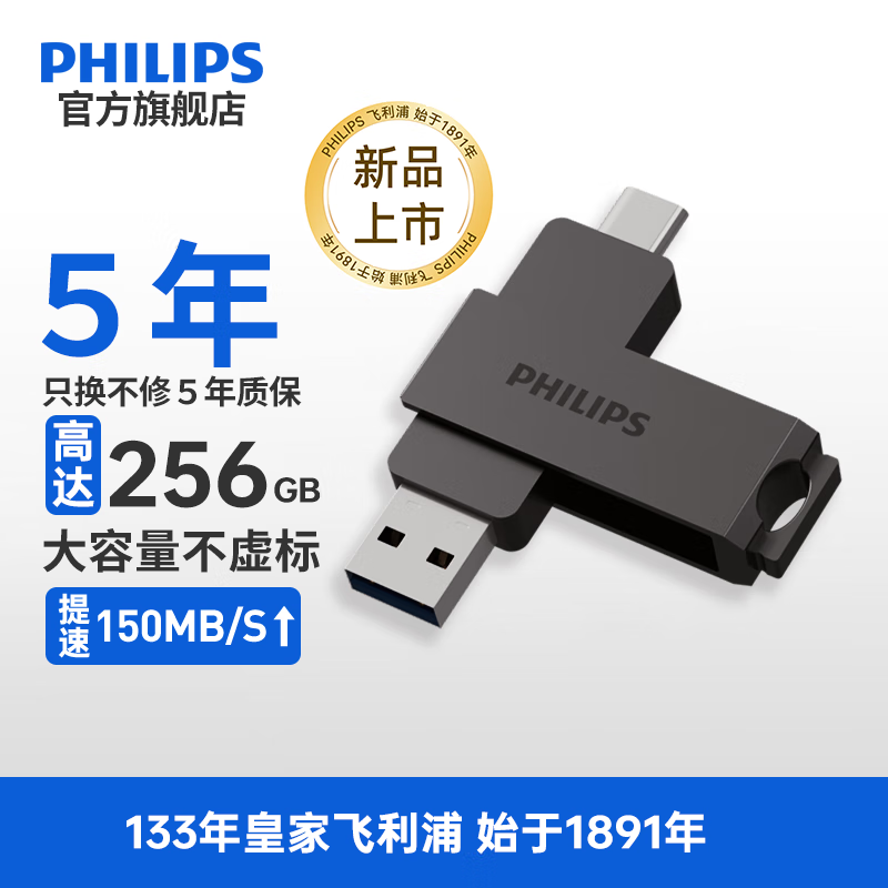 飞利浦USB3.0金属移动双头C口U盘:手机电脑两用,64GB高速存储,商务学生必备