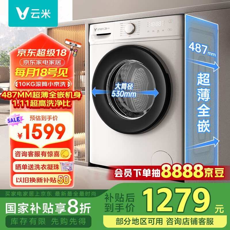 云米WM10FSA-W6A:小身材大容量,高效洗净的10公斤智能滚筒洗衣机,仅售1599元