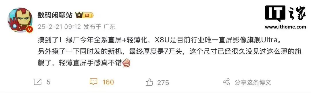 2 月 21 日消息,博主 @数码闲聊站透露 OPPO 旗下 6.3 英寸 Find X8 系列小屏手机最终厚度为“7 开头”,号称是“这个尺寸已经很久没见过这么薄的旗舰了”,同时其还透露 Find X8 Ultra 是“目前行业唯一直屏影像旗舰 Ultra”。
